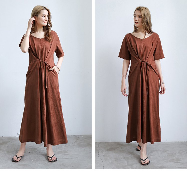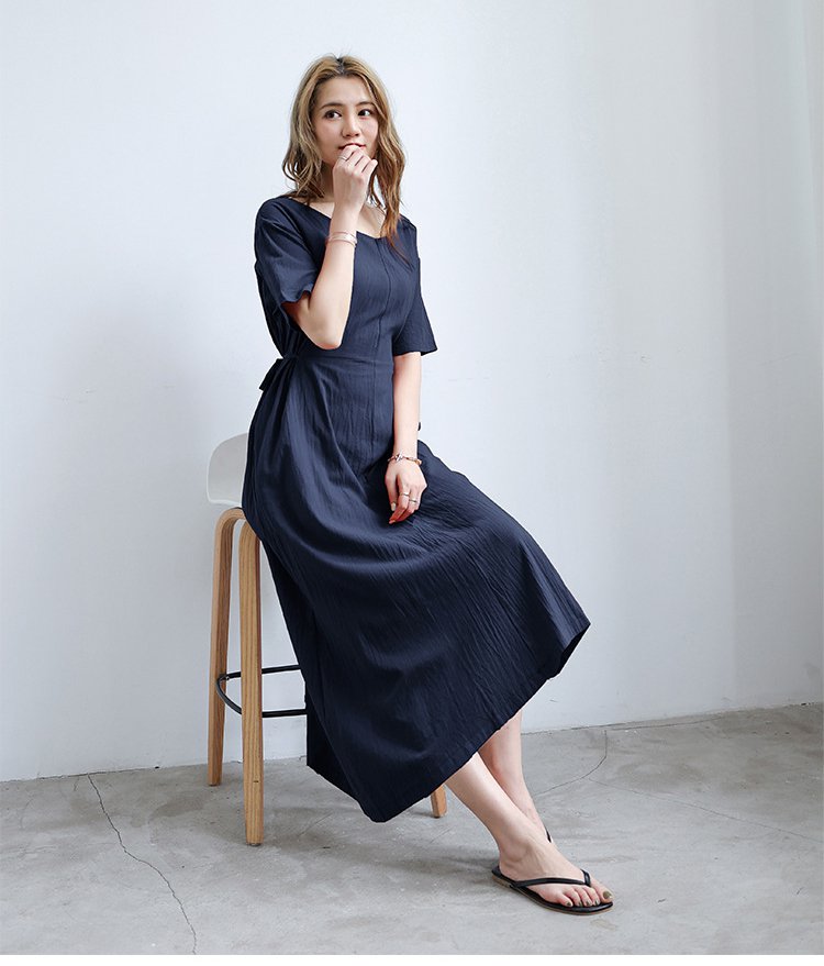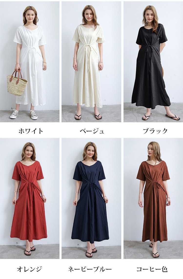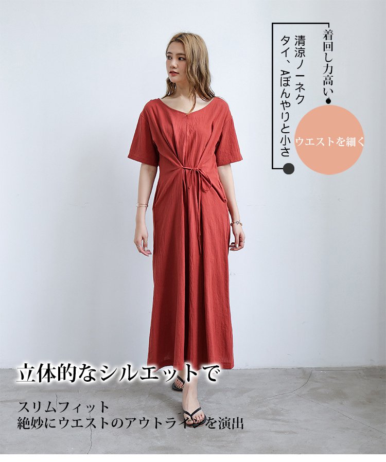 長め無地ルーズなレースアップワンピース前後2WAYタイプ