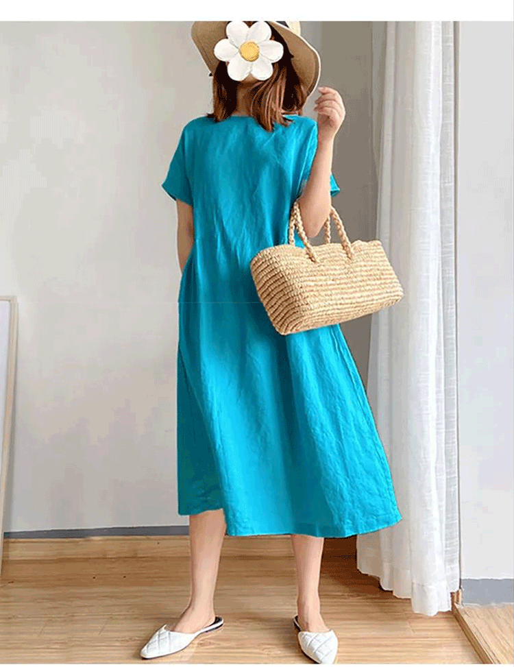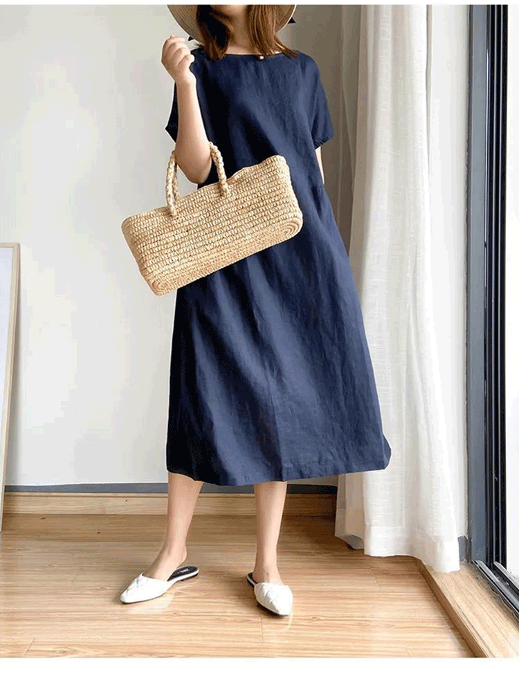 【コットンリネン無地ワンピース】細見え コットンリネン ゆっとり 爽やか 肌に優しい